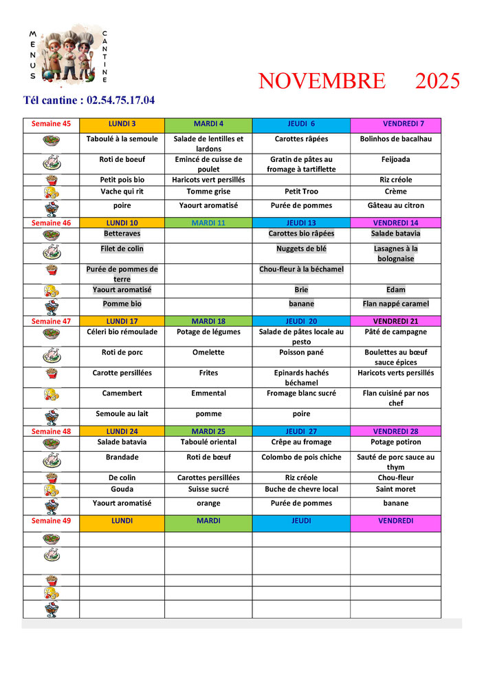 MENUS DE LA CANTINE